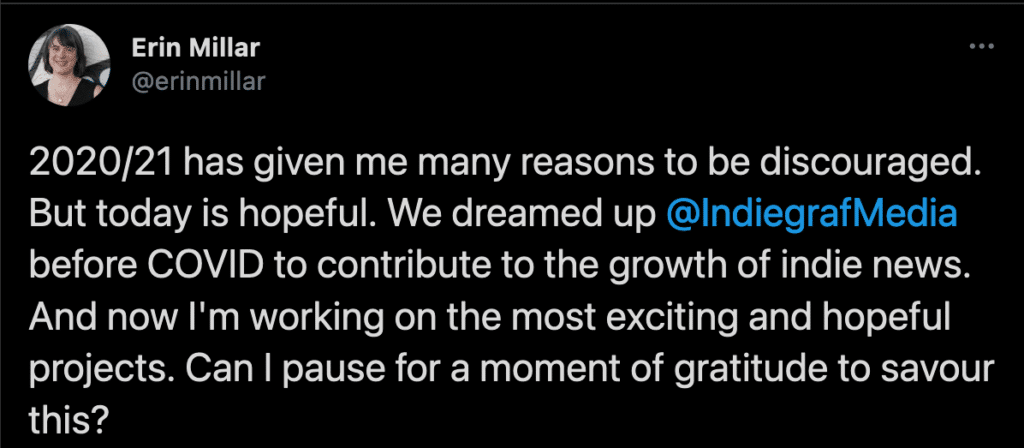 Mixed emotions! The corporate-owned model of journalism hasn’t only failed its readers, it has failed its journalists. On the other hand, we’re also in a moment of renaissance for independent media in Canada. And it feels really exciting to be throwing our hat in the ring at this moment.
